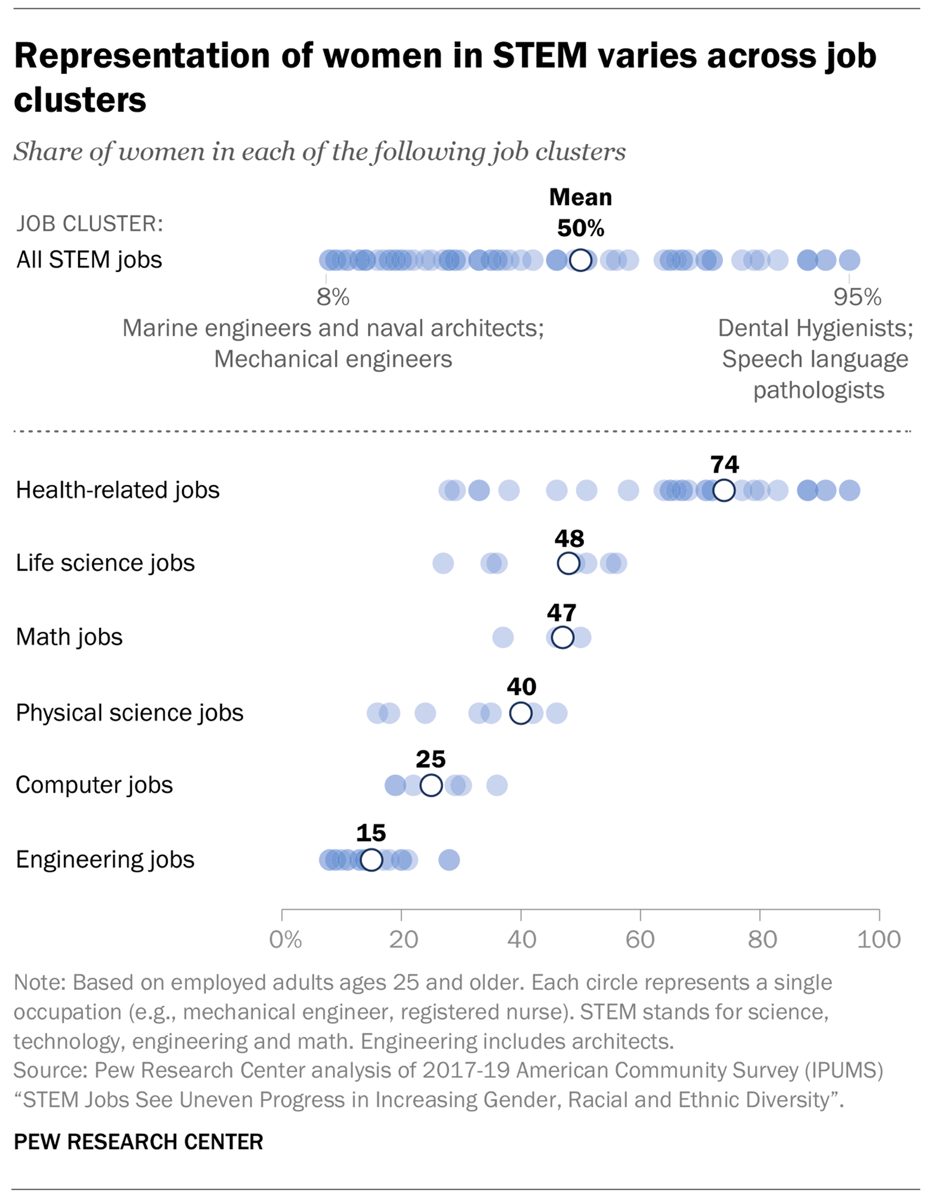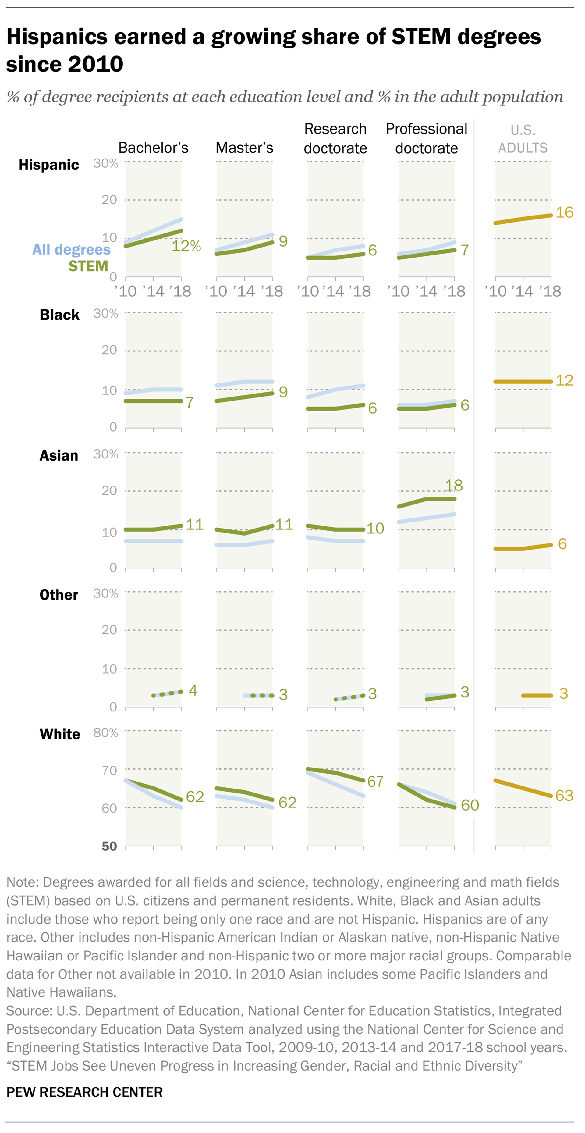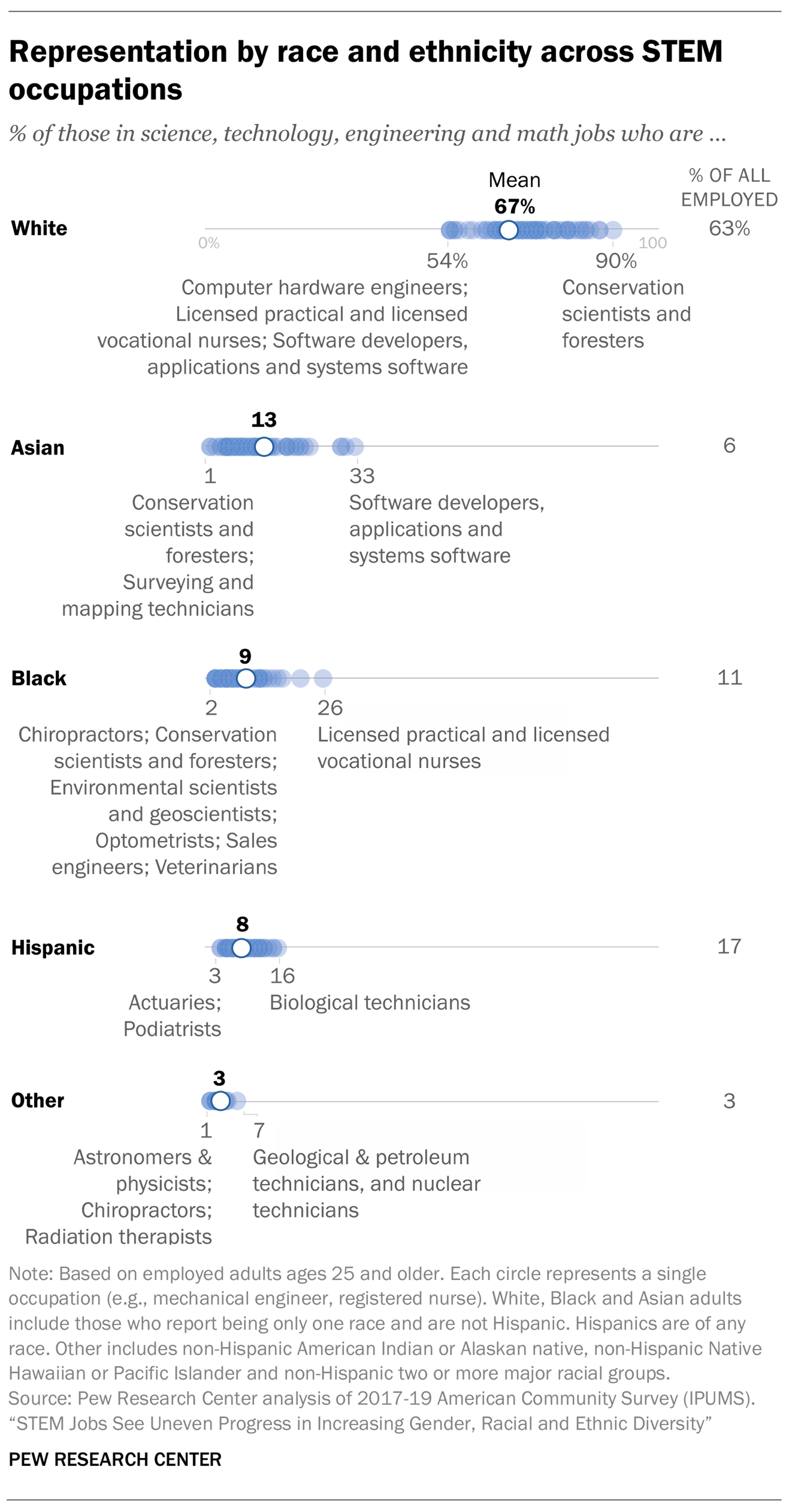 I made these four graphics for Pew Research Center's "STEM Jobs See Uneven Progress in Increasing Gender, Racial and Ethnic Diversity."